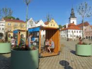 Přímo na náměstí vznikla klidová zóna s novým posezením, moderní zelení a panelovou expozicí o historii a současnosti města.