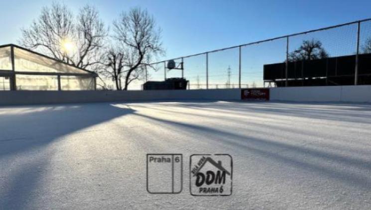 Veřejné bruslení na Vypichu. Provozovatelem kluziště je Dům dětí a mládeže Prahy 6.