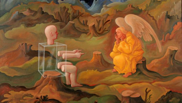 Výstava českého maliře Michala Tomka (*1951 Praha), který se většinu pracovního života se zabýval restaurováním nástěnných maleb a obrazů (např. středověké malby v kostele sv. Jakuba v Telči, v kostele sv. Jana Křtitele na Landštejně, malby v Arcibiskupském paláci v Praze, obrazy Mistra Theodorika na Karlštejně aj.). V současné době se věnuje výhradně vlastní malířské práci, žije a pracuje v Senohrabech u Prahy.