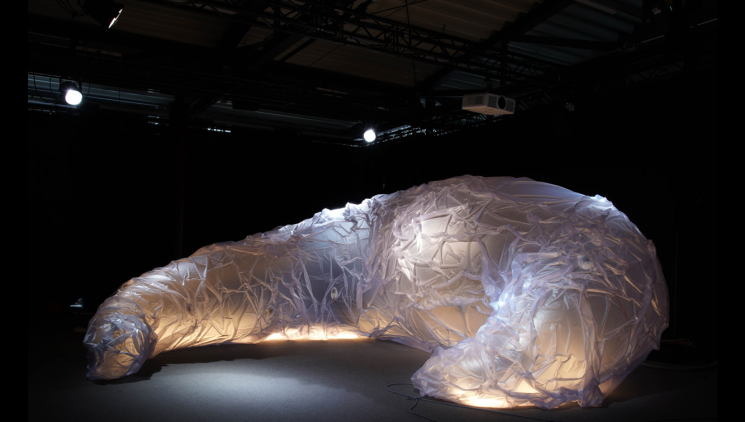 Název výstavy odkazuje k procesu trávení, instalace rozvíjejí motiv vstřebávání a propojují témata i bakterie, které v každodenním životě potkáváme, od mikrobiálních cest až po měnící se ekosystémy. Ke všem šesti instalacím lze přistupovat zcela otevřeně a hravě, hranice jejich čtení jsou měkké a porézní. Poréznost je princip trávení. Propustné membrány umožňují výměnu látek, tekutin a signálů, díky níž se z cizího stává vlastní. Stejně tak porézní hranice děl nechávají vjemy a příběhy vstřebávat, proměňovat se a vyrůstat ve společnou zkušenost. Tento přístup může fungovat zároveň jako určitá forma péče – vede od vjemu k uklidnění, od sdílení k well-beingu (pocitu duševní i tělesné pohody). Vzniká tak prostor a čas na vstřebání myšlenek, vůní a textur. Prostorová, zvuková a haptická gesta jednotlivých instalací se skládají v celek, který dýchá vlastním tempem a vytváří plynulý rytmus linoucí se prostorem. Zvukové nahrávky metabolismu nebo fermentace udávají výstavě tempo. Tyto drobné děje (bublání vnitřností, kvašení mikrobů) se překládají do rytmů, které tělo může cítit. Rozšiřují tím možnosti toho, co všechno se může stát hlasem – a jak se skrze něj uzdravovat.