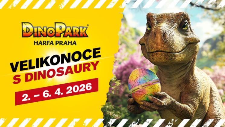 Od 2. 4. do 6. 4. 2026 na vás čeká speciální velikonoční stezka, která provede děti celým DinoParkem. Děti budou hledat ukrytá vejce Plnit zábavné úkoly A sbírat písmenka do tajenky Kdo tajenku vyluští, odnese si malou odměnu – třeba samolepku se Stegouškem nebo sladkou dobrotu. Přijďte si užít jarní dny plné radosti, pohybu a zážitků mezi dinosaury. Těšíme se na vás i na všechny malé dobrodruhy! DinoPark Praha Harfa 2.–6. 4. 2026