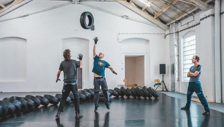 Čtyři těla a stovky kilogramů pneumatik se propojují ve fyzicky náročném představení, které zkoumá křehké vztahy mezi lidmi a jejich prostředím. Nepředvídatelná hromada pneumatik, která dominuje scénografii a určuje lidské jednání, se postupně proměňuje v živou a dynamickou architekturu. PNEU je performativním hřištěm, kde pravidla nečekaně mizí a zase se objevují, chaos se stává strukturou a nerovnováha hybnou silou.