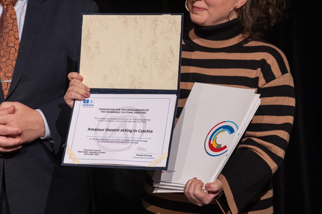 Během pátečního večera, kdy probíhala v prostoru Galaxie slavnostní akce Amatéři sobě – slavíme!!!, byl amatérským divadelníkům z rukou vrchního ředitele sekce živého umění Ministerstva kultury Mgr. Milana Němečka, Ph.D. symbolicky předán certifikát o zápisu na Seznam nehmotného kulturního dědictví UNESCO. Certifikát je vnímán jako ocenění dlouhodobé práce amatérských divadelníků napříč regiony – lidí, kteří divadlo vytvářejí často ve volném čase, s minimální viditelností, ale s výrazným dopadem na kulturní a společenský život.