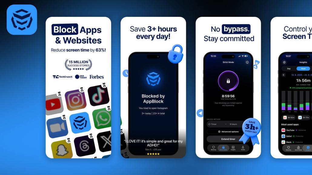 Pokud máte pocit, že na vás jemná upozornění nefungují, je tu český AppBlock. Je to nekompromisní policajt ve vašem telefonu. Můžete si nastavit přísné podmínky, kdy a kde se do aplikací nedostanete. Skvělá je funkce blokování podle polohy, která vám vypne pracovní maily doma nebo sociální sítě v kanceláři. Aplikace umí blokovat i otravné notifikace, takže vás telefon nebude lákat ani cinkáním. Pokud potřebujete tvrdý režim a chcete mít jistotu, že neuhnete, je tohle volba číslo jedna. Navíc tím podpoříte i české vývojáře z Hradce Králové!