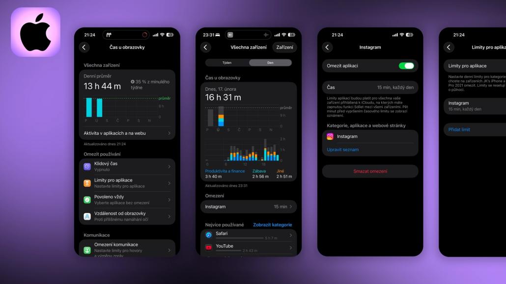 Nejjednodušší cestou je začít tím, co už máte v kapse přímo v iPhonu. Systém iOS nabízí funkci Čas u obrazovky, která je skvělým nástrojem pro nastavení zrcadla vašim návykům. V nastavení si jednoduše zvolíte aplikace a denní limit. Jakmile čas vyprší, systém vás odstřihne a zobrazí blokační obrazovku (screen-shield). Má to ale háček. Protože Apple je na uživatele příliš hodný, tak tlačítko pro ignorování limitu je až moc lákavé a snadno dostupné. Pokud máte slabou vůli, tak to není pro vás výrazná překážka a pravděpodobně to časem budete ignorovat. Jako prvotní diagnostika problému je to ale skvělý test.