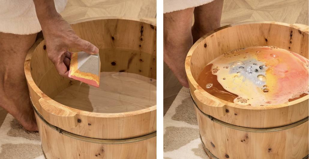 Spa rituál ale nemusí být jen o koupeli. Některé produkty jsou zaměřené přímo na regeneraci těla. Volcano je lázeň na nohy s epsomskou solí bohatou na hořčík, která pomáhá uvolnit unavené svaly. Kombinace čajovníku, citronové trávy a šalvěje přináší svěžest i pocit okamžité úlevy.