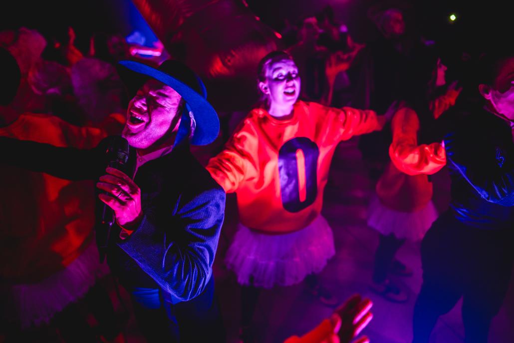 Divadlo jako rituál, hra na mši, funky gospel, liturgická anarchie režiséra Viktora Tauše a hudebního skladatele Romana Holého.